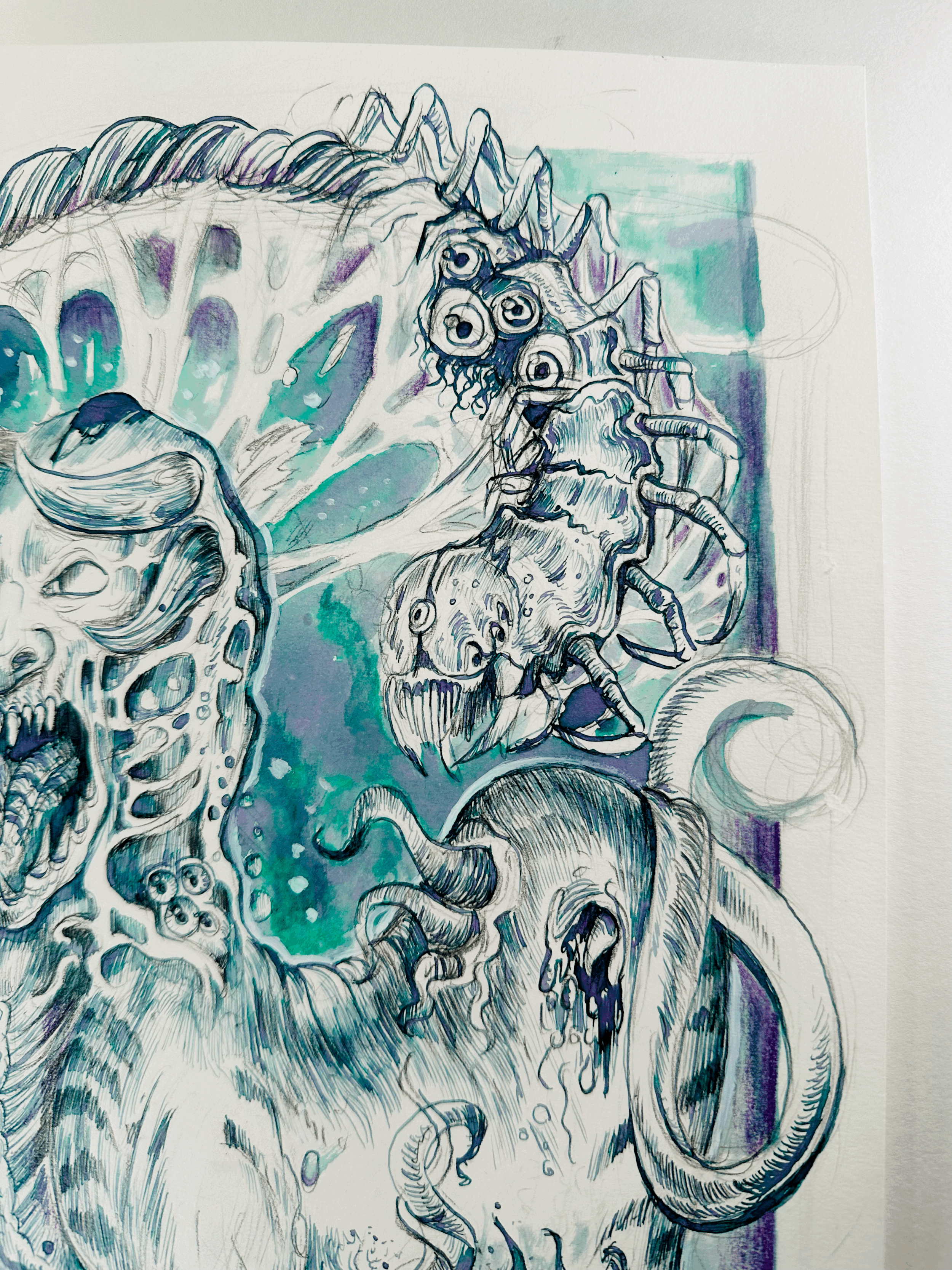 Am liebsten fertige ich meine Bilder auf Papier mit einer Grammatur von 150 bis 200 an. Ich benutzte für meine Bilder am liebsten Farbe und Pinsel. Bei meinen digitalen Werken arbeite ich mit meinem iPad. Als Software benutzte ich hier Procreate.
